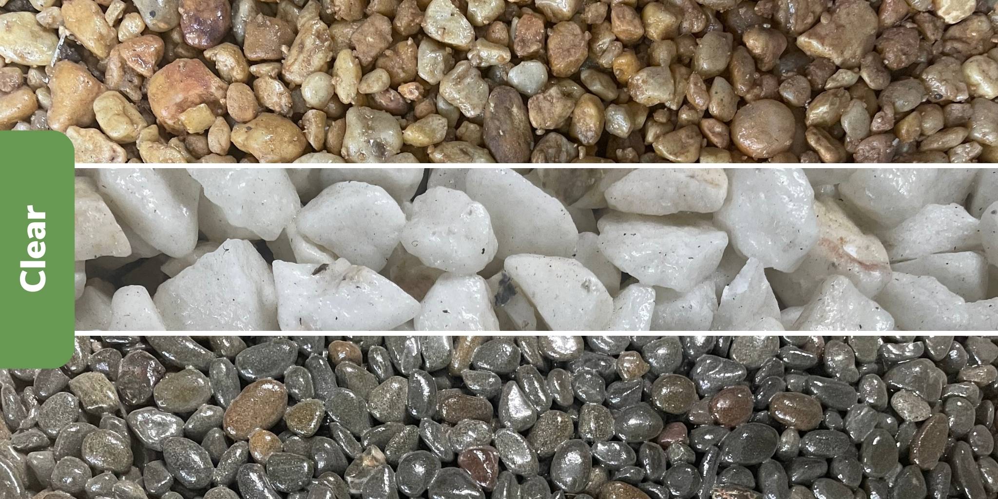 Pour On is the ideal polyurethane gravel binder to achieve a perfect resin stone surface. Offers two versions of the binder, amber and clear. Amber is less expensive if you are not concerned about the colour gravel look.